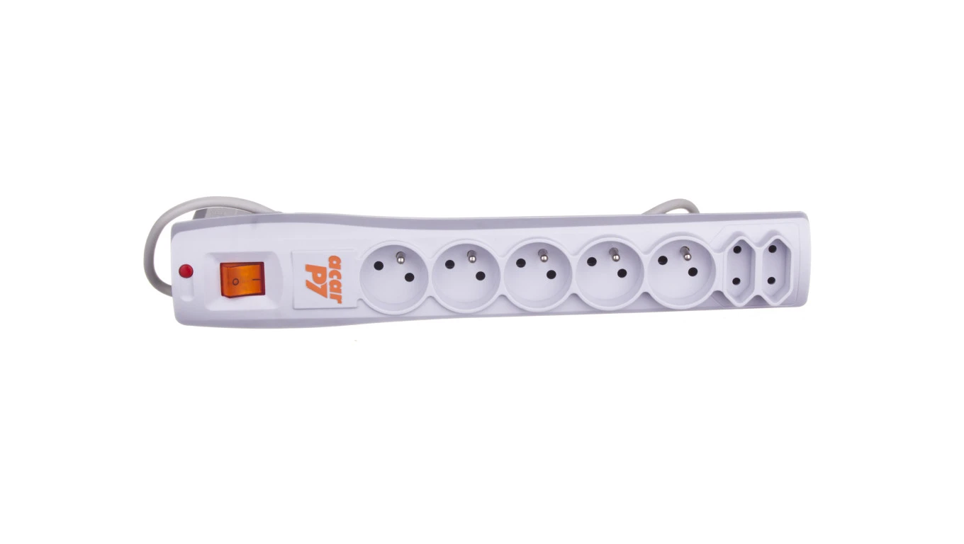 Przedłużacz przeciwprzepięciowy 7-gniazd ACAR P7 3m szary