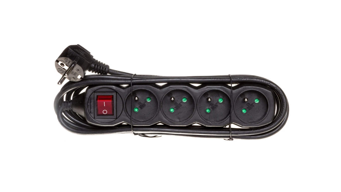 Przedłużacz z wyłącznikiem 4-gniazda z/u 3m /H05VV-F 3G1/ czarny PC1413