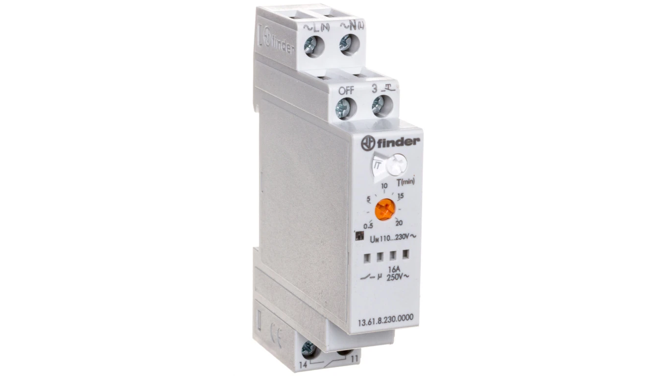 Przekaźnik czasowy 0,5- 20min 1Z 16A 230V AC wielofunkcyjny z funkcją restartu 13.61.8.230.0000