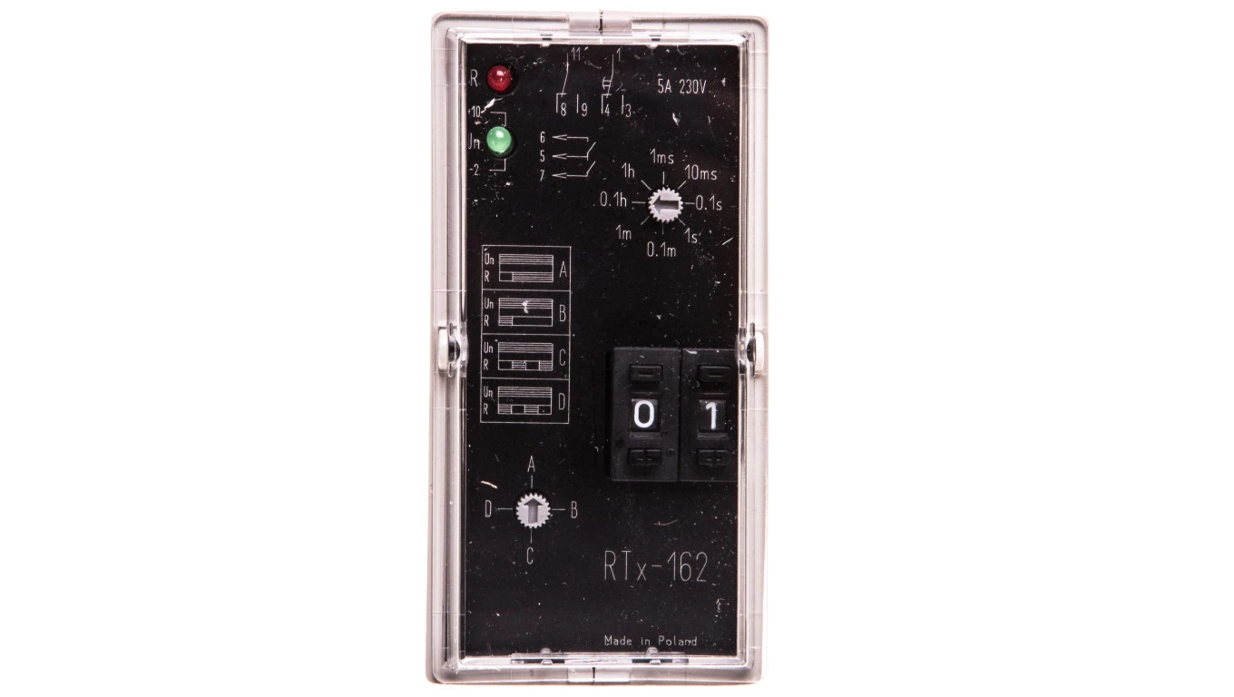 Przekaźnik czasowy 2P 5A 0,01sek-100h 220-230V AC/DC 4-funkcyjny RTX-162 220/230