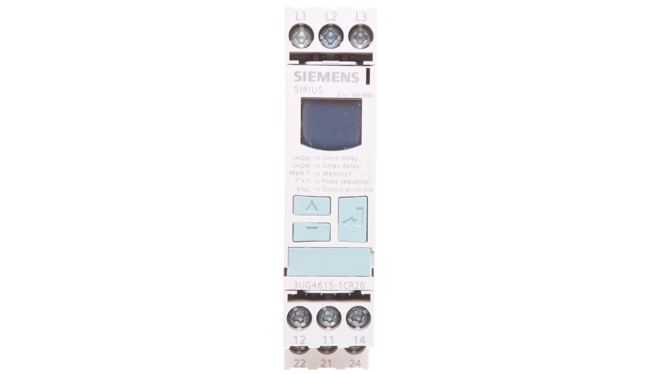 Przekaźnik kolejności, zaniku faz i obniżenia napięcia 2P 3A 0,1-20sek 160-690V AC wyświetlacz LCD 3UG4615-1CR20