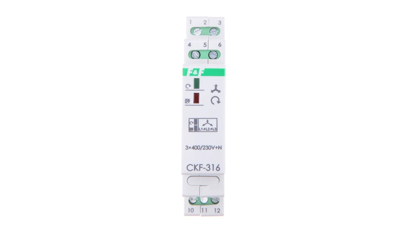 Przekaźnik kolejności, zaniku i asymetrii faz 3x400/230V+N 10A 1P 4sek 55V CKF-316