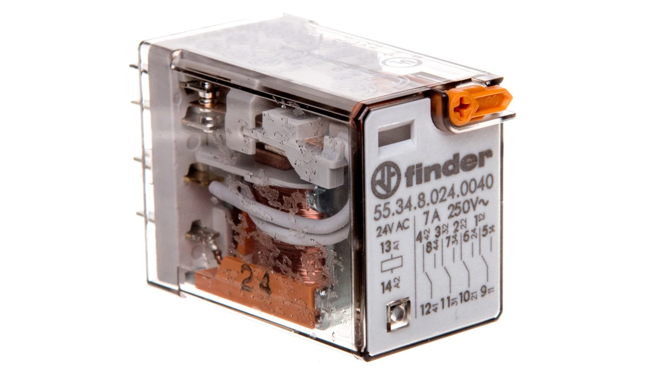 Przekaźnik miniaturowy 4P 7A 24V AC przycisk testujący mechaniczny wskaźnik zadziałania AgNi 55.34.8.024.0040
