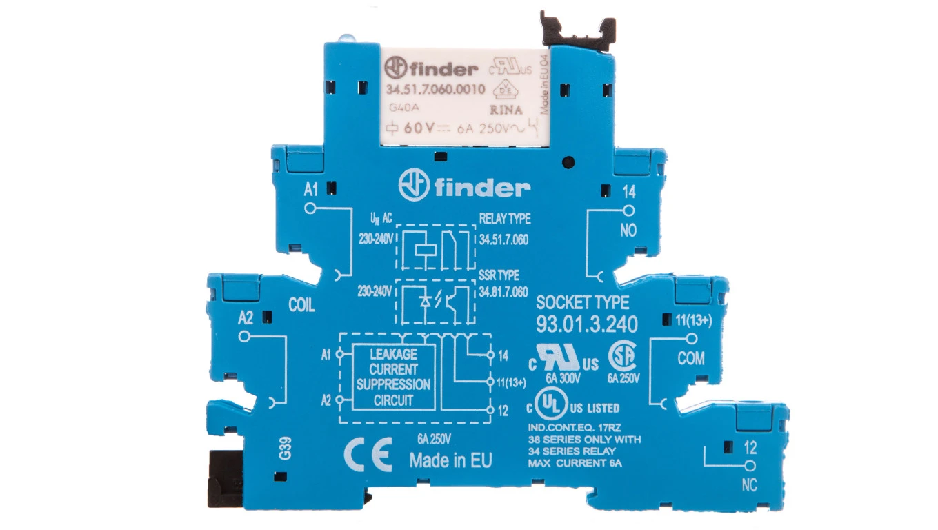 Przekaźnikowy moduł sprzęgający 1P 6A 230-240V AC 6,2mm styki AgNi do LINII DŁUGICH 38.51.3.240.0060