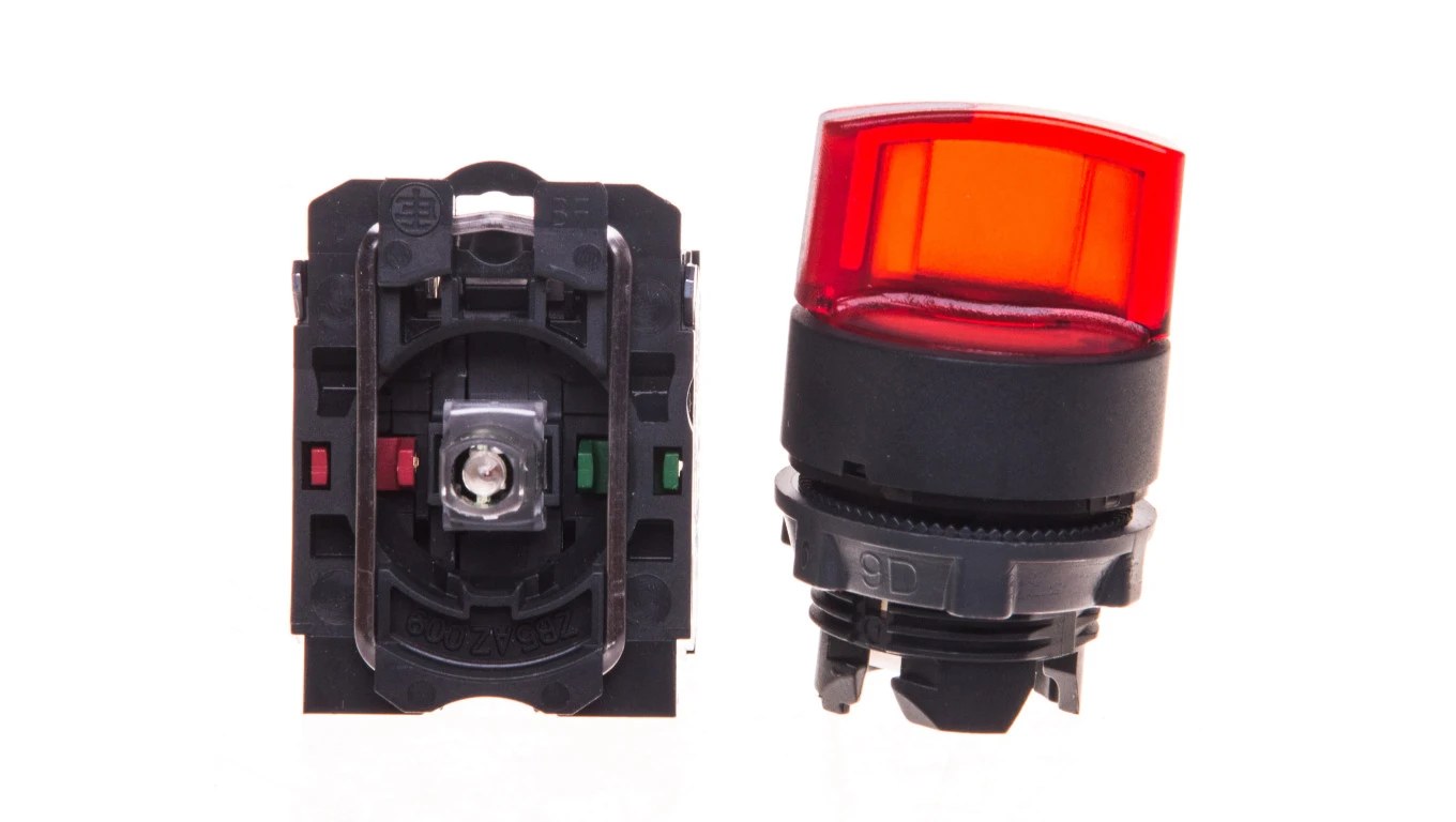 Przełącznik 2 położeniowy pokrętło 22mm czerwony 1Z 1R bez samopowrotu z podświetleniem 230V AC XB5AK124M5
