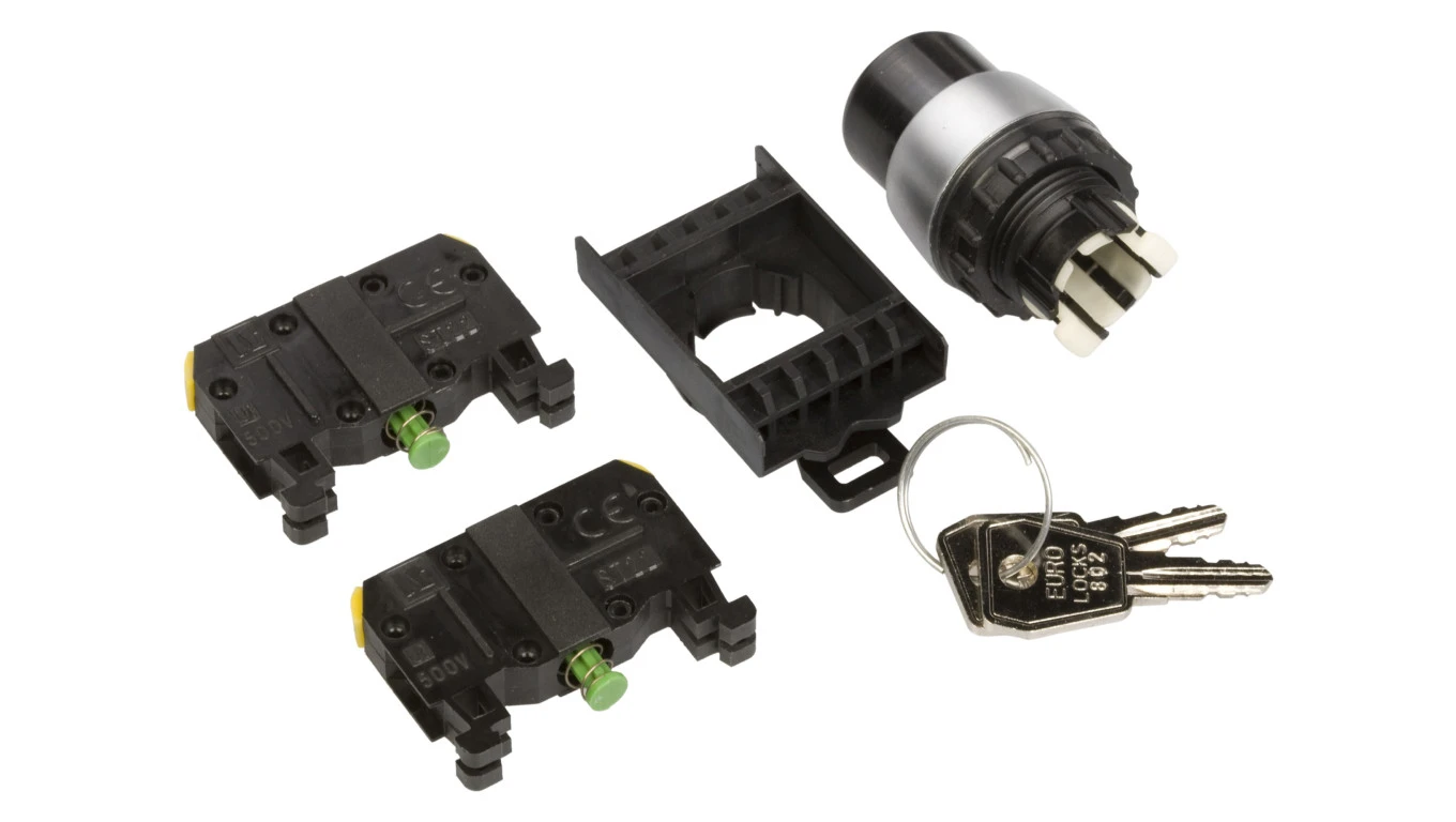 Przełącznik 3 połóżeniowy klucz 22mm czarny 2Z bez samopowrotu ST22-SAAA-20.