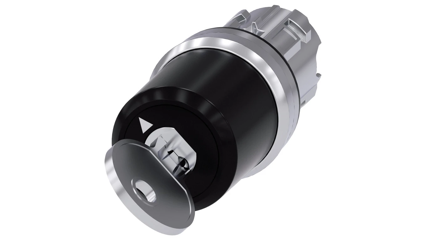 Przełącznik z kluczem Siemens 22mm okrągły metal błyszczący nr zamka SSG10 2 poz. O-I monost. kąt zał. 90st. 3SU1050-5BF11-0AA0