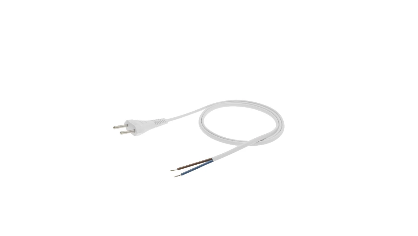 Przewód z płaską wtyczką b/u H03VVH2-F 2x0,5 biały S-13-0,5-2-1 /2m/