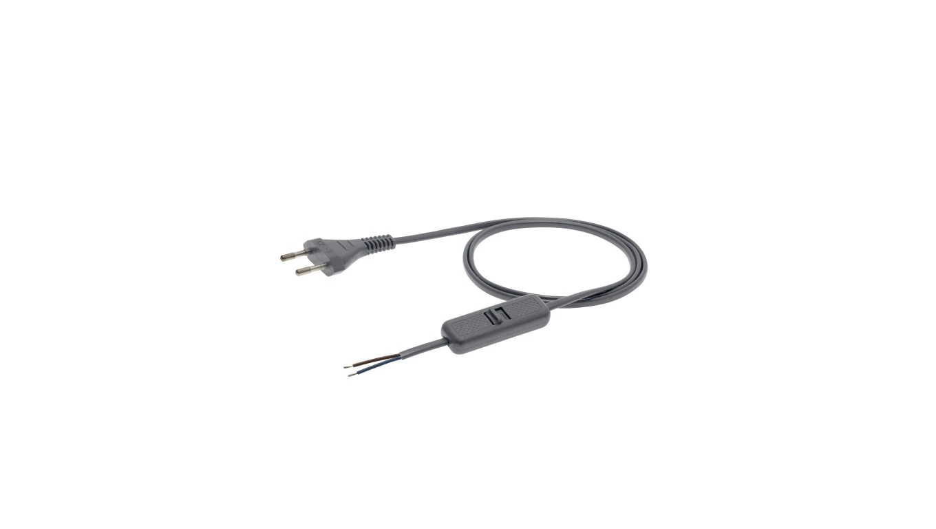 Przewód z wyłącznikiem z płaską wtyczką b/u H03VVH2-F 2x0,5 srebrny S-13W-0,5-2-14 /2m/