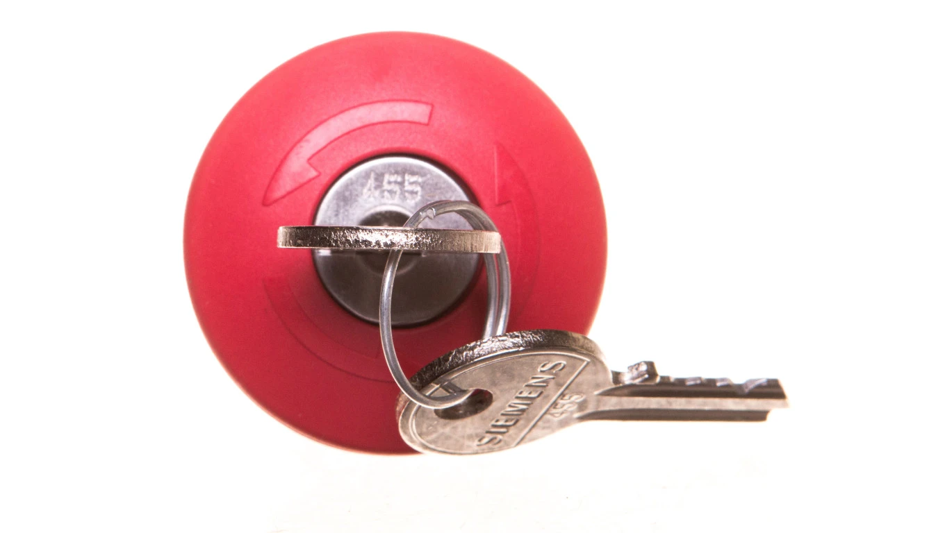 Przycisk bezpieczeństwa 22mm z zamkiem Ronis nr SB30 tworzywo czerwony 40mm 2 klucze IP69k SIRIUS ACT 3SU1000-1HG20-0AA0