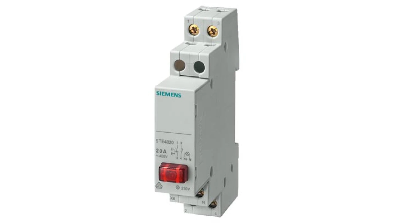 Przycisk modułowy 20A 1Z 1R czerwony z lampką 230V przełączany mono/bistabilny 5TE4820