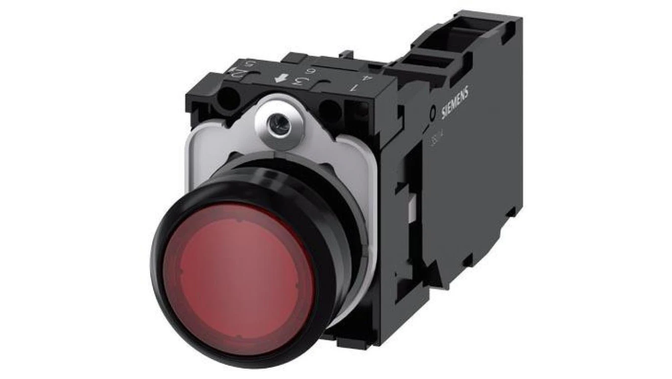 Przycisk podświetlany, 22 mm, okrągły, plastikowy, czerwony, przyciskowy, płaski, z zestykiem chwilowym, z uchwytem, 1 NO+1 NC