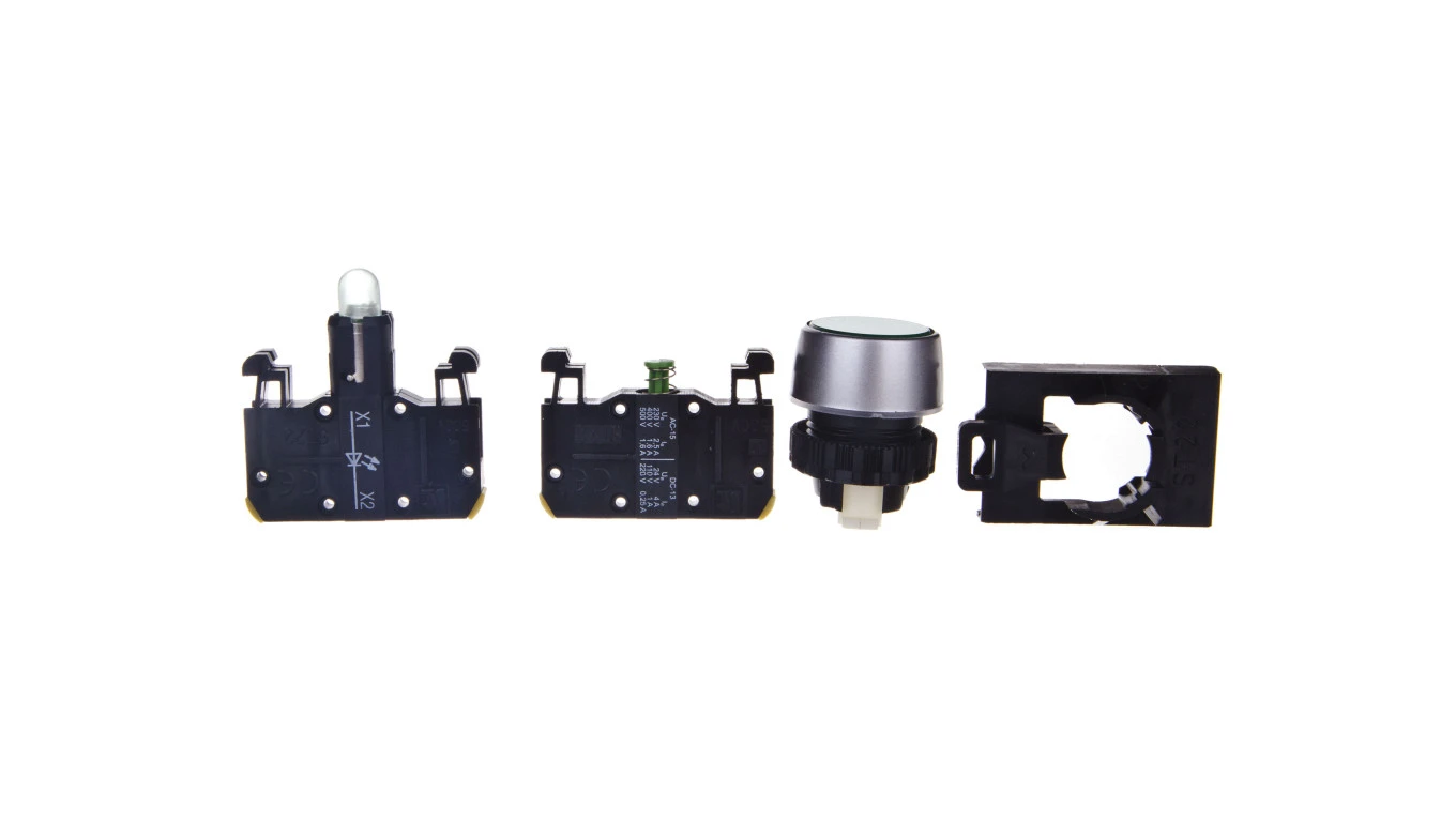 Przycisk sterowniczy 22mm zielony 1Z 1R z samopowrotem z podświetleniem ST22-KLZ-10-24-LEDAC/DC