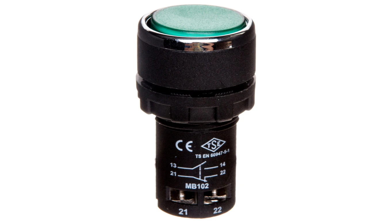 Przycisk sterowniczy monoblok, kryty, niestabilny, 1NO+1NC, zielony T0-MB102DY