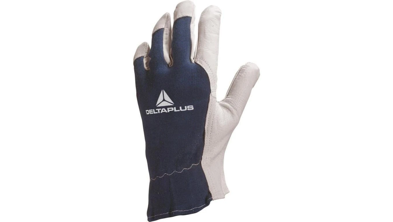 Rękawice z koziej skóry strona grzbietowa z dżerseju biało-niebieskie rozmiar 10 CT402BL10