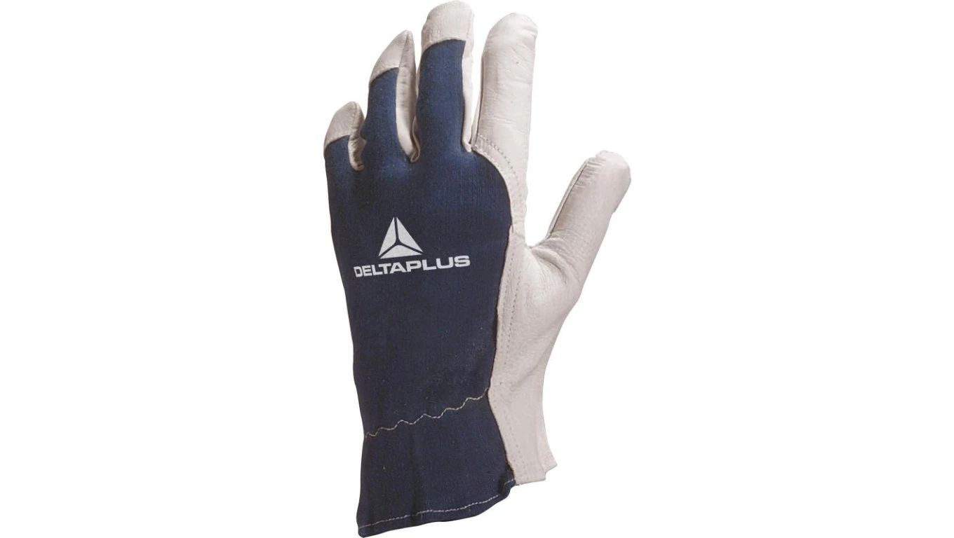 Rękawice z koziej skóry strona grzbietowa z dżerseju biało-niebieskie rozmiar 9 CT402BL09
