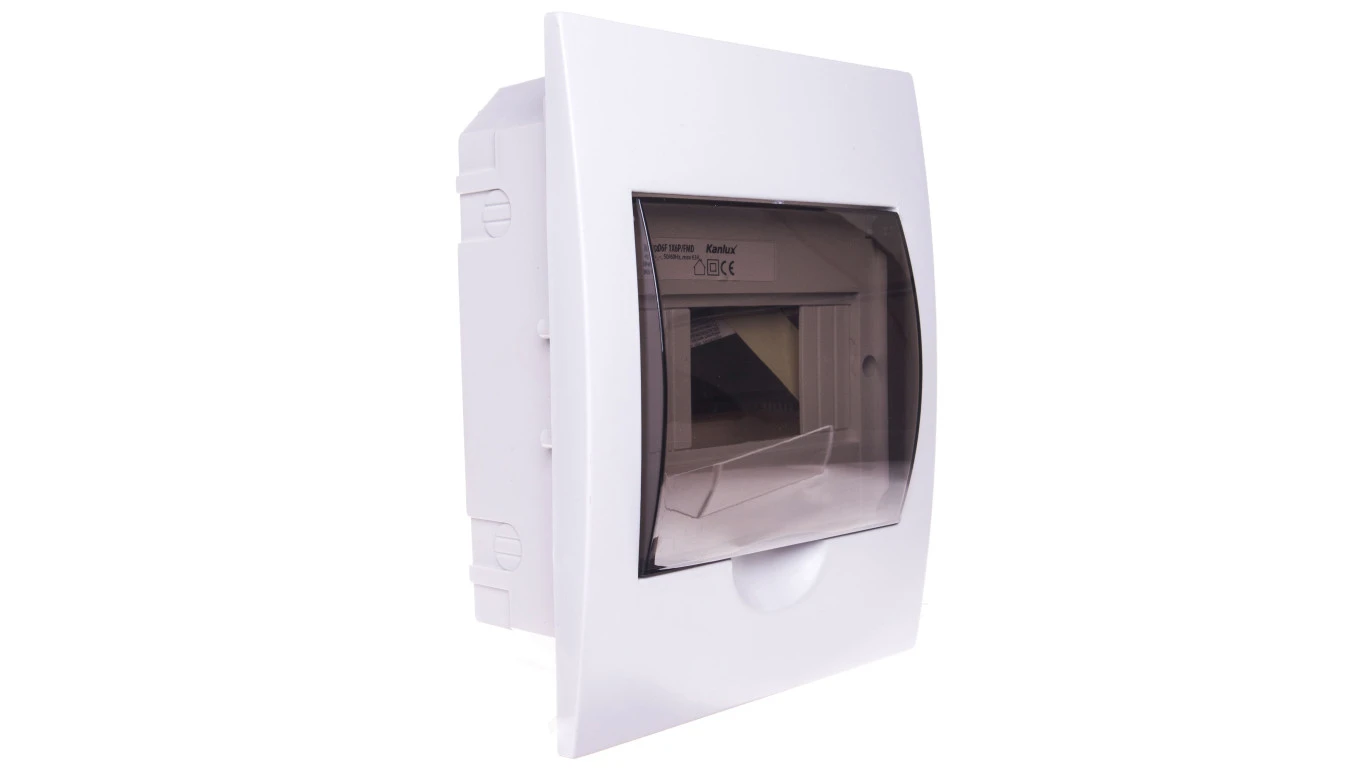 Rozdzielnica modułowa tworzywo 1x6 podtynkowa IP40 IK06 N+PE II klasa drzwi transparentne szare DB106F 1X6P/FMD biały 3841