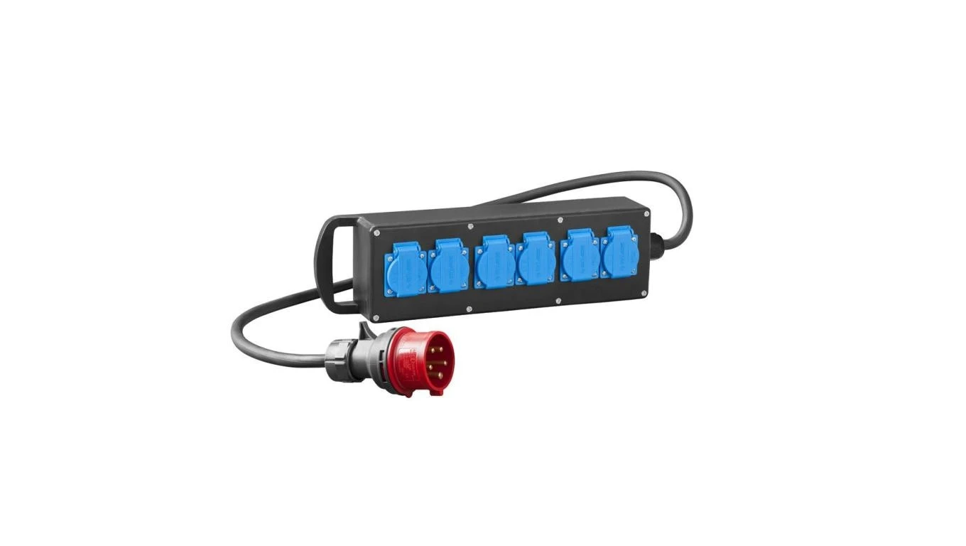 Rozgałęziacz przemysłowy RS-P gumowany 6x2P+Z, z 2m przewod. OnPd 3x2,5 i wtyczką 16A 5P 7001-10