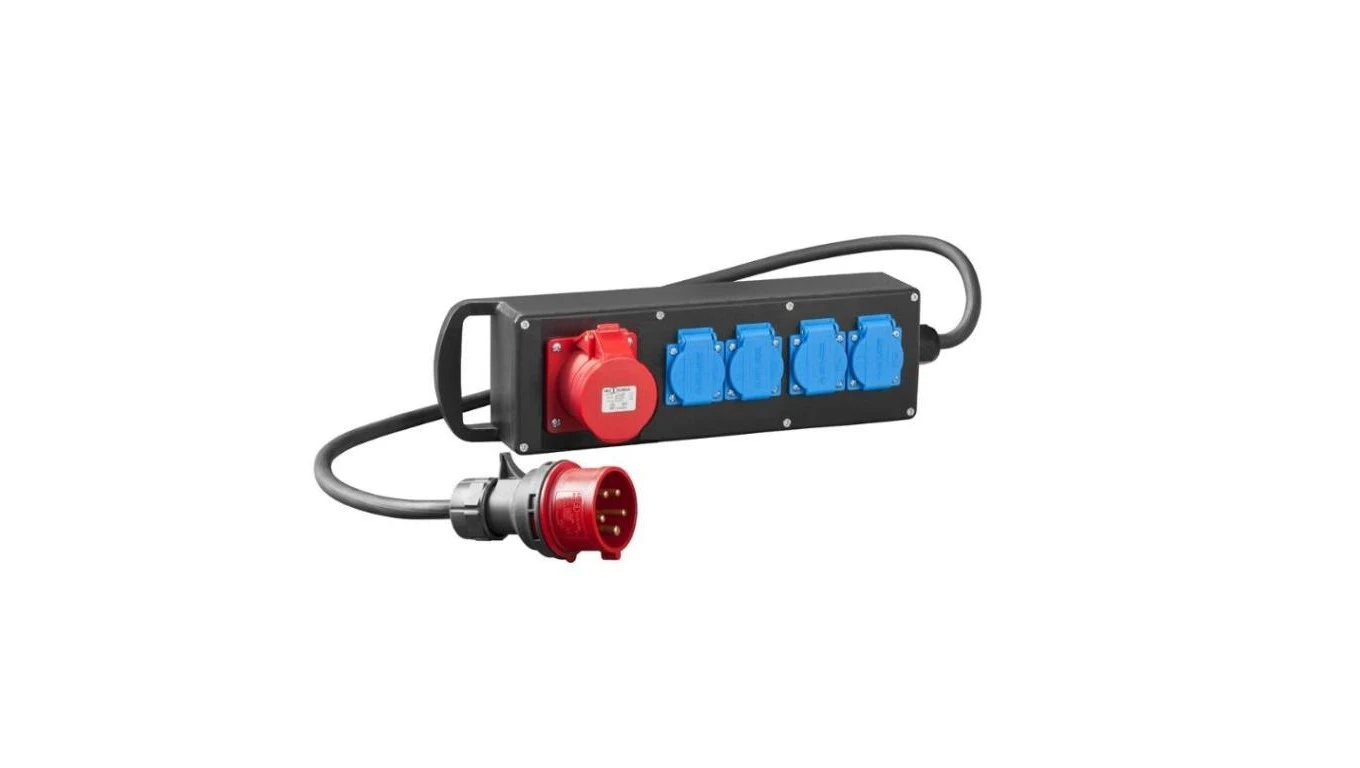 Rozgałęziacz przemysłowy RS-P gumowany gniazda (4x2P+Z, 32A 5P) z przewodem i wtyką 5P/32A czarny 7002-10