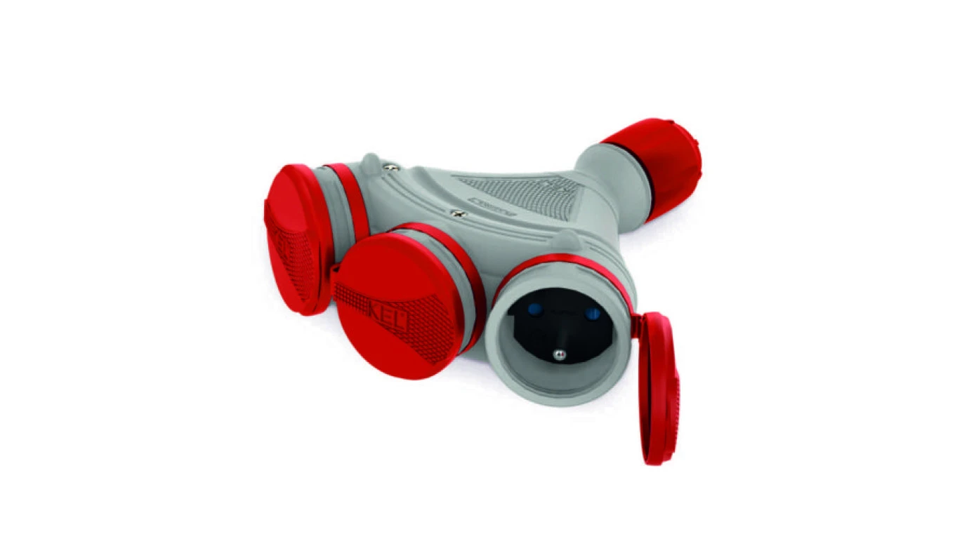 Rozgałęźnik do przedłużacza 3-gniazda z/u 16A 250V IP54 szary/czerwony GN-X3/54 W-01155
