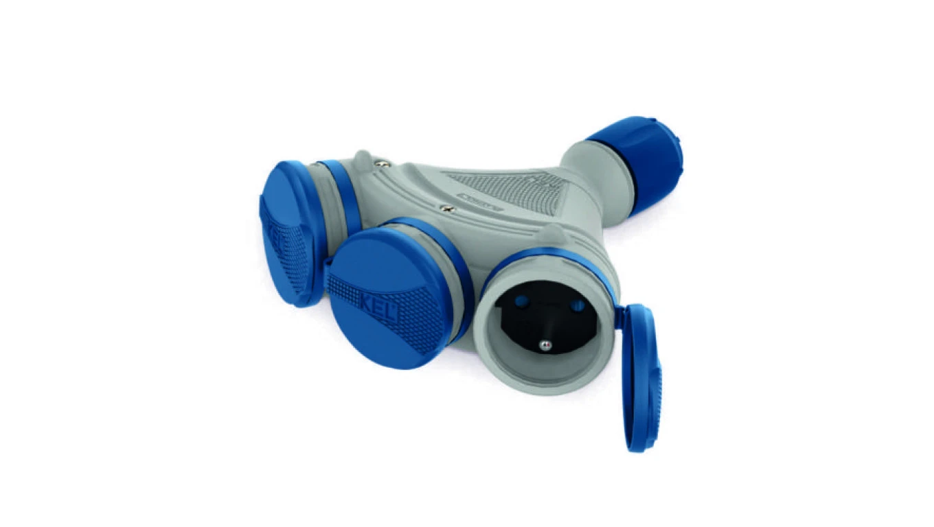 Rozgałęźnik do przedłużacza 3-gniazda z/u 16A 250V IP54 szary/niebieski GN-X3/54 W-01157