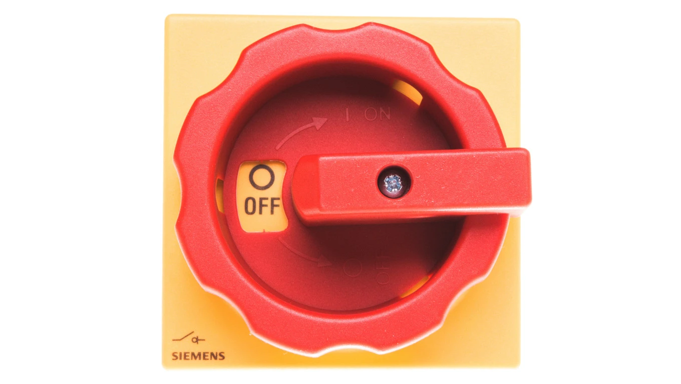 Rozłącznik główny/awaryjny 3P 63A 22kW AC23A 400V montaż na płycie z wałkiem pokrętło żółto-czerwone 4 otwory 3LD2514-0TK53