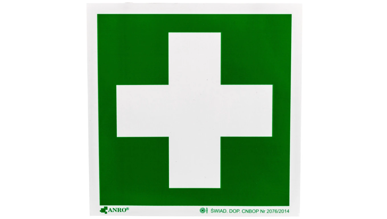 Samoprzylepna tabliczka ostrzegawcza /Pierwsza pomoc 150x150/ IE/003/F/FS