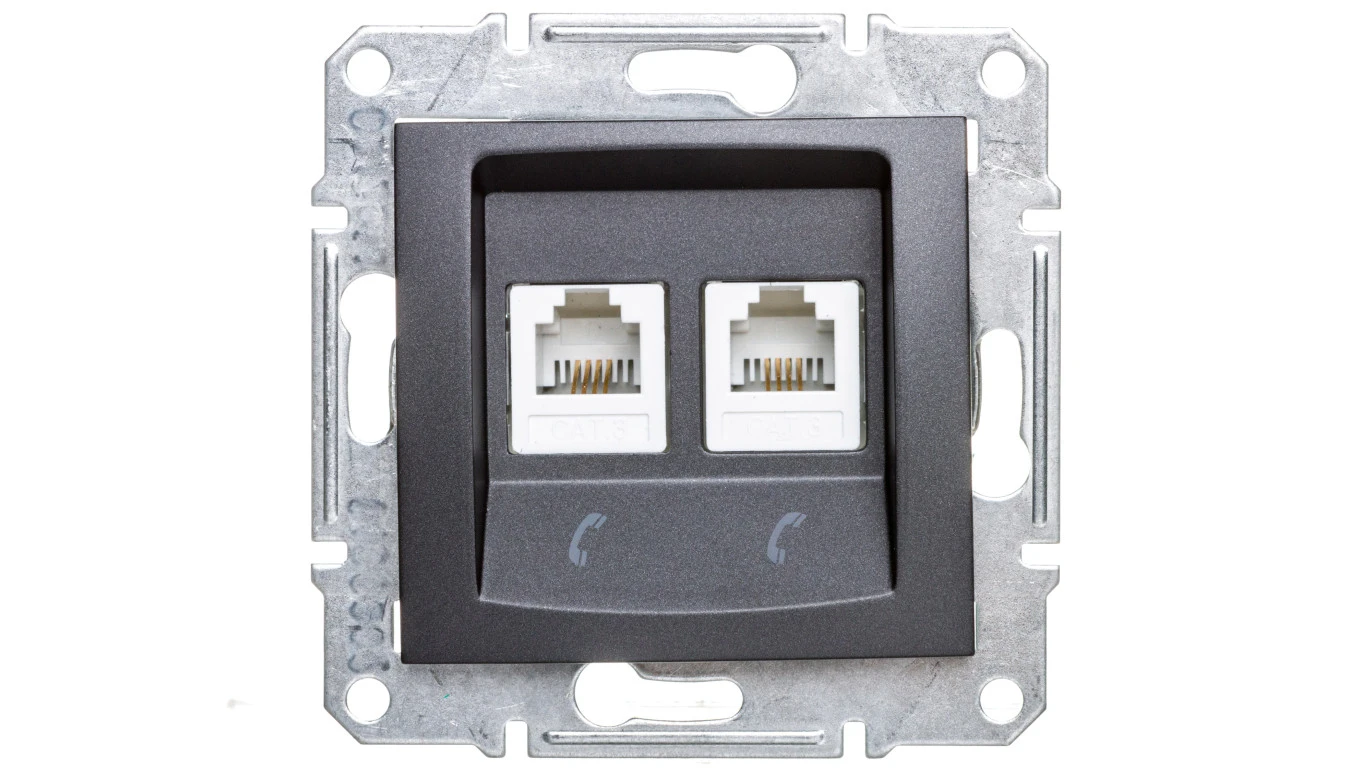 SEDNA Gniazdo telefoniczne podwójne RJ11 grafitowe SDN4201170