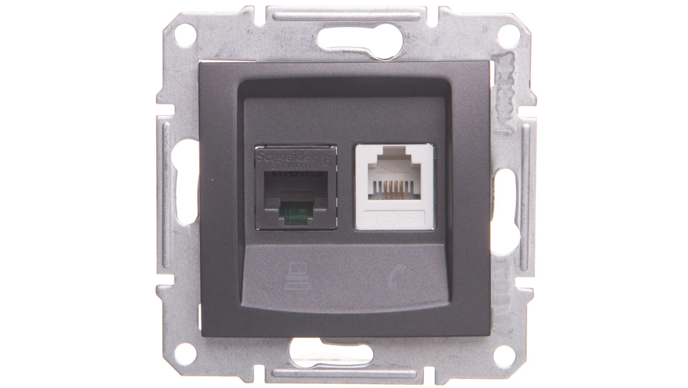 SEDNA Gniazdo teleinformatyczne RJ11 RJ45 kat.6 UTP grafitowe SDN5200170