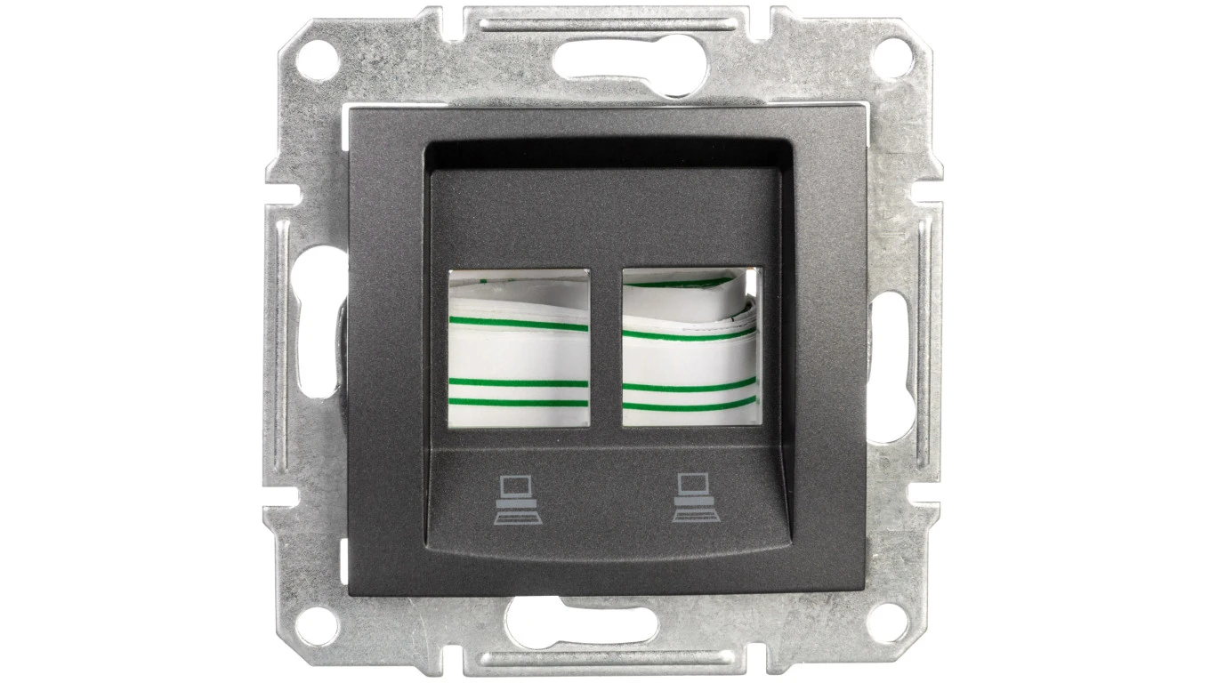 SEDNA Płytka centralna podwójna pod wkład komputerowy RJ45 AMP,MOLEX grafitowa SDN4400670