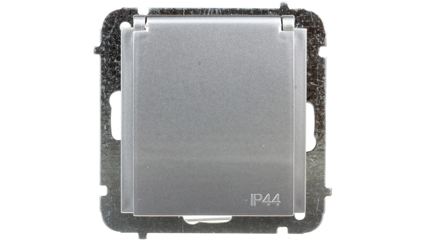 Sentia Gniazdo bryzgoszczelne z/u IP44 z przesłonami srebrny połysk 1436-56
