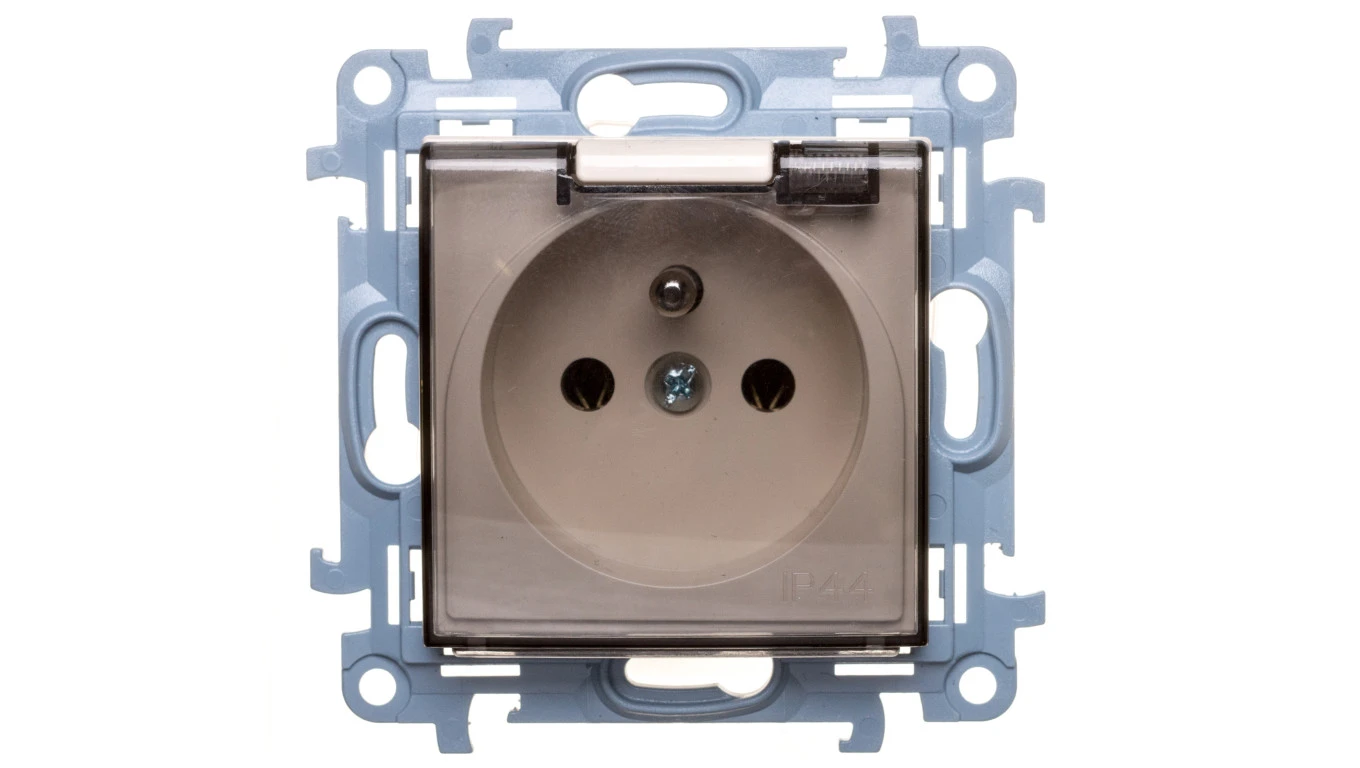 Simon 10 Gniazdo pojedyncze z uszczelką klapką transparetną kremowe 16A 250V IP44 CGZ1B.01/41A