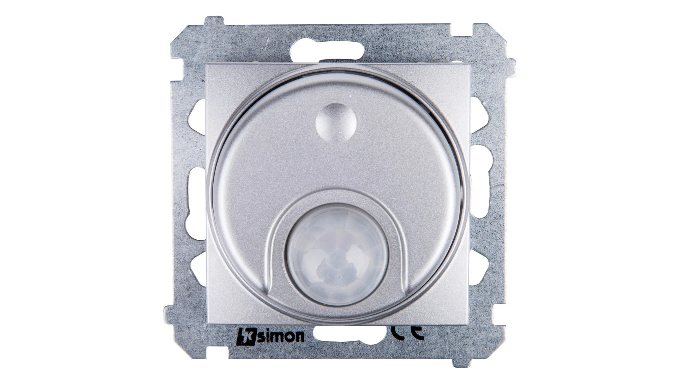 Simon 54 Czujnik ruchu z przekaźnikiem i zabezpieczeniem srebrny mat DCR11P.01/43