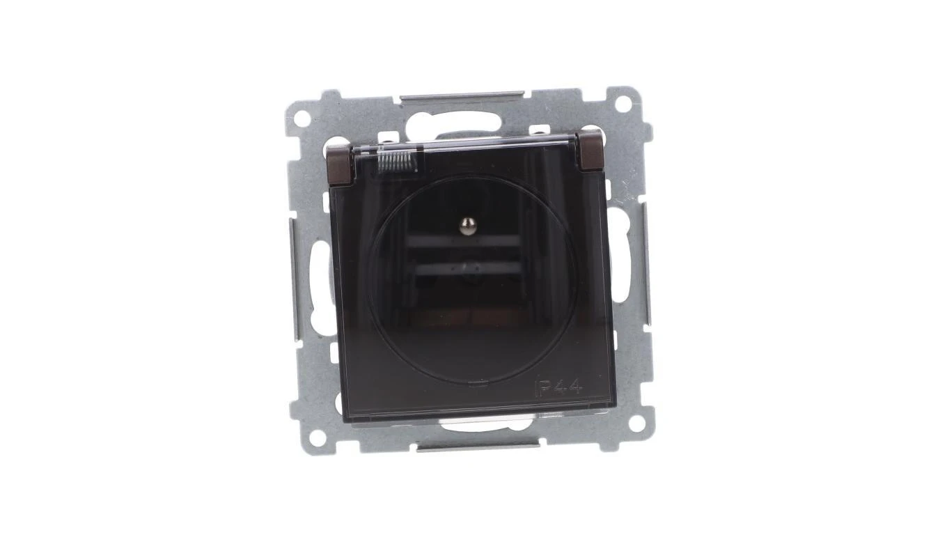Simon 54 Gniazdo bryzgoszczelne (bez uszczelki) IP44 z przesłoną torów z klapką brąz mat DGZ1BUZ.01/46A