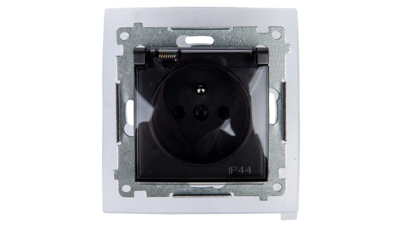 Simon 54 Gniazdo bryzgoszczelne z/u IP44 z klapką transparentną antracyt DGZ1BZ.01/48A