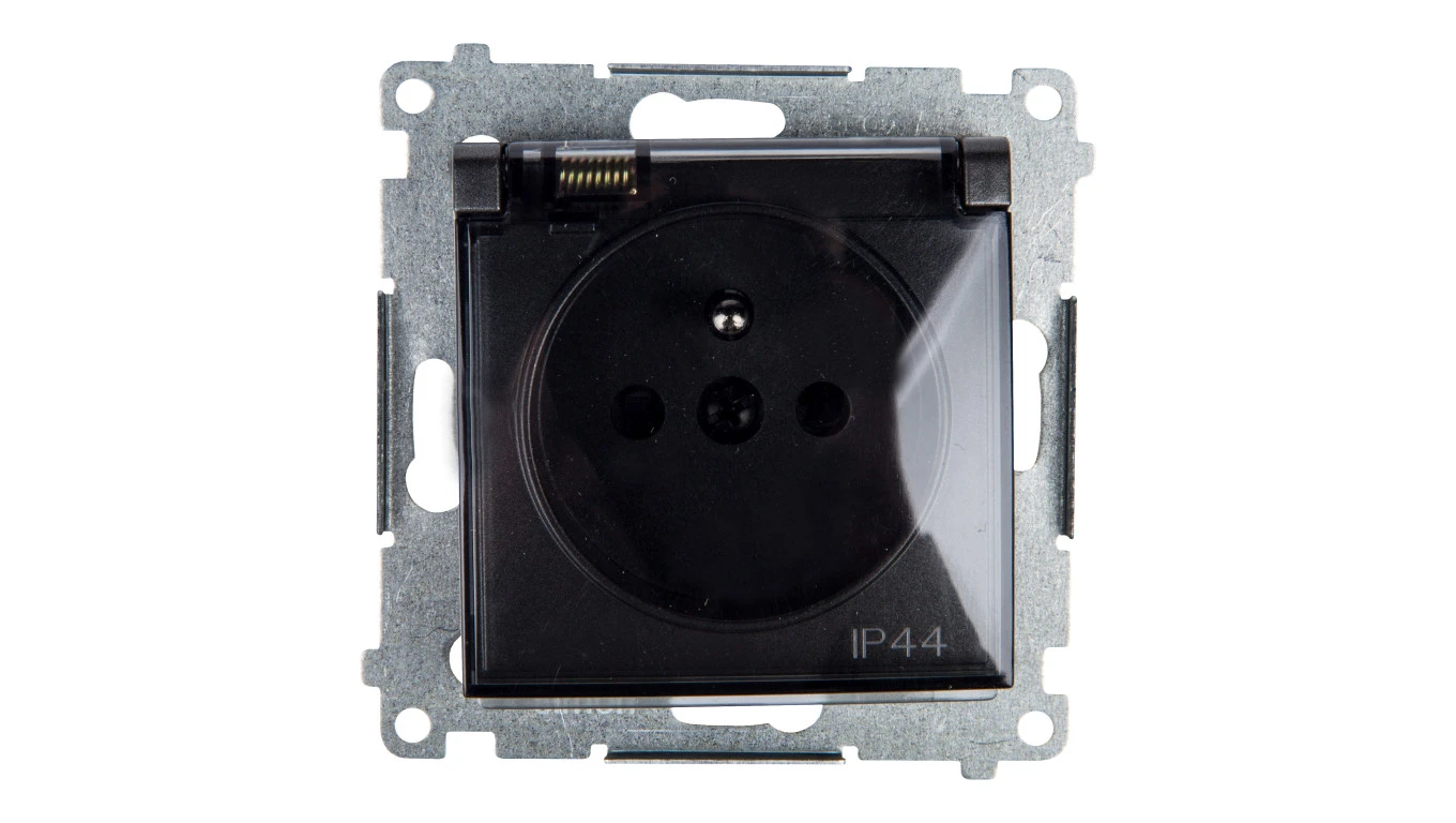 Simon 54 Gniazdo bryzgoszczelne z/u IP44 z klapką transparentną bez uszczelki antracyt DGZ1BUZ.01/48A