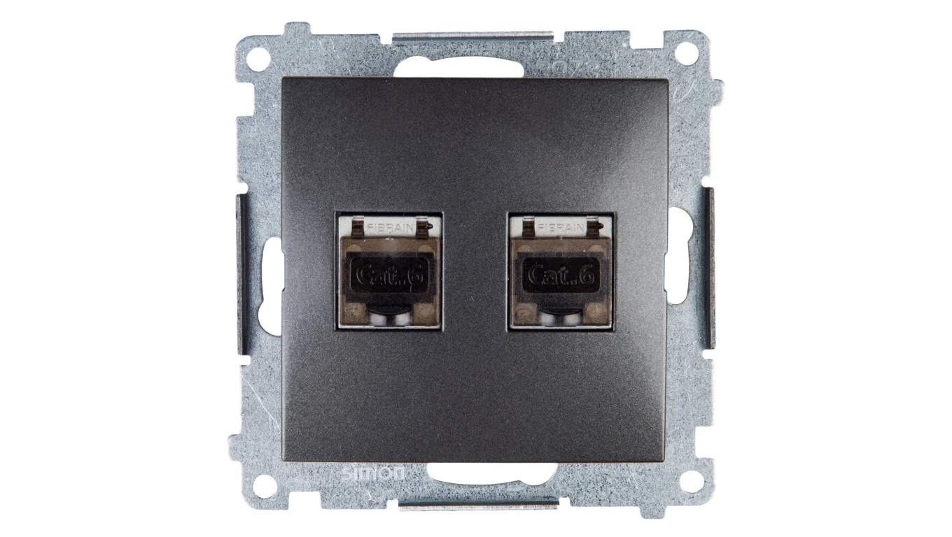 Simon 54 Gniazdo komputerowe podwójne 2xRJ45 kat.6 ekranowane z przesłoną antracyt D62E.01/48