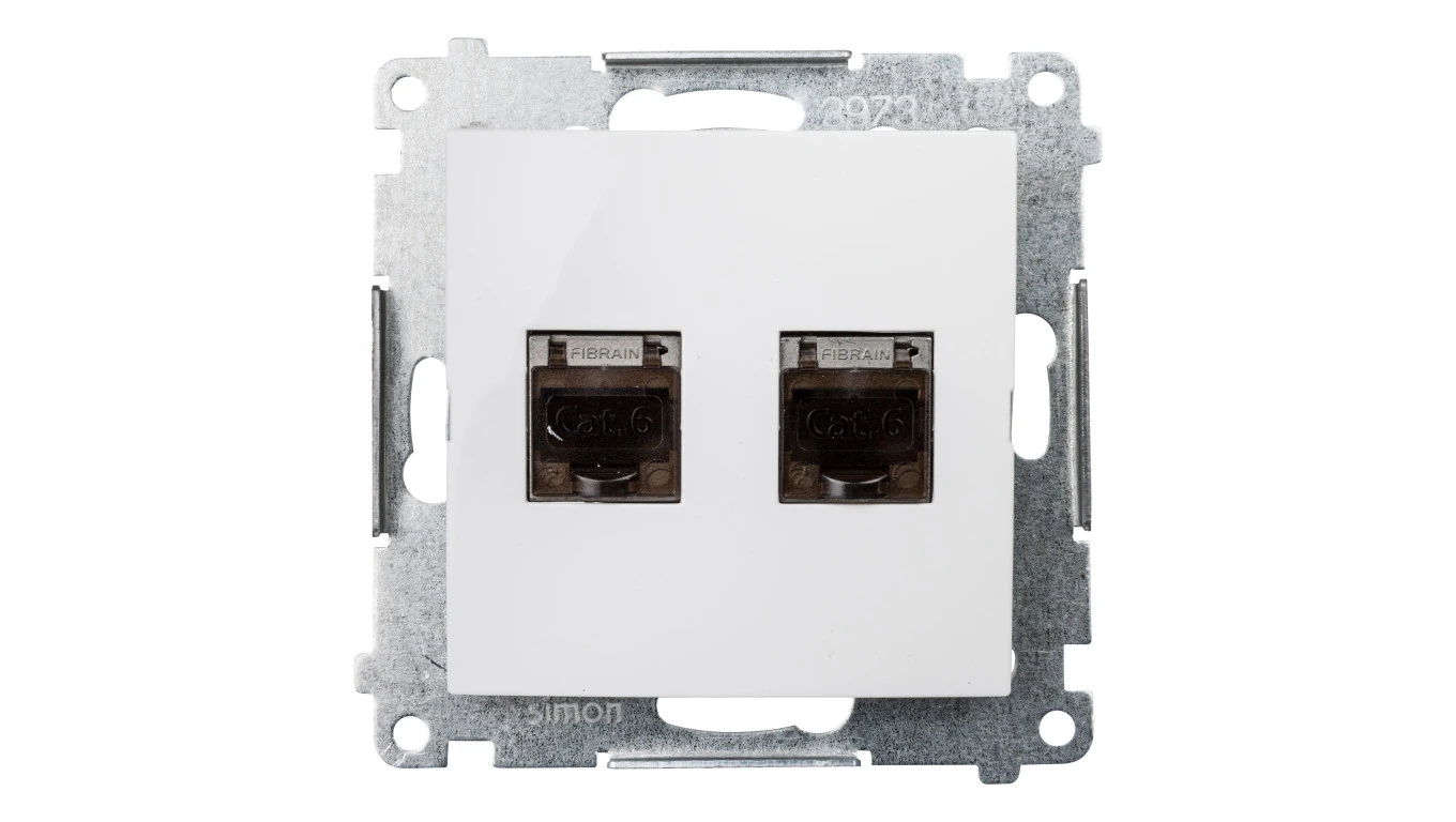 Simon 54 Gniazdo komputerowe podwójne 2xRJ45 kat.6 ekranowane z przesłoną białe D62E.01/11