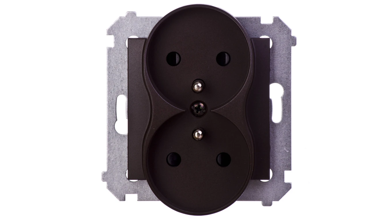 Simon 54 Gniazdo podwójne z/u 16A IP20 z przesłoną torów brąz mat DGZ2MZ.01/46