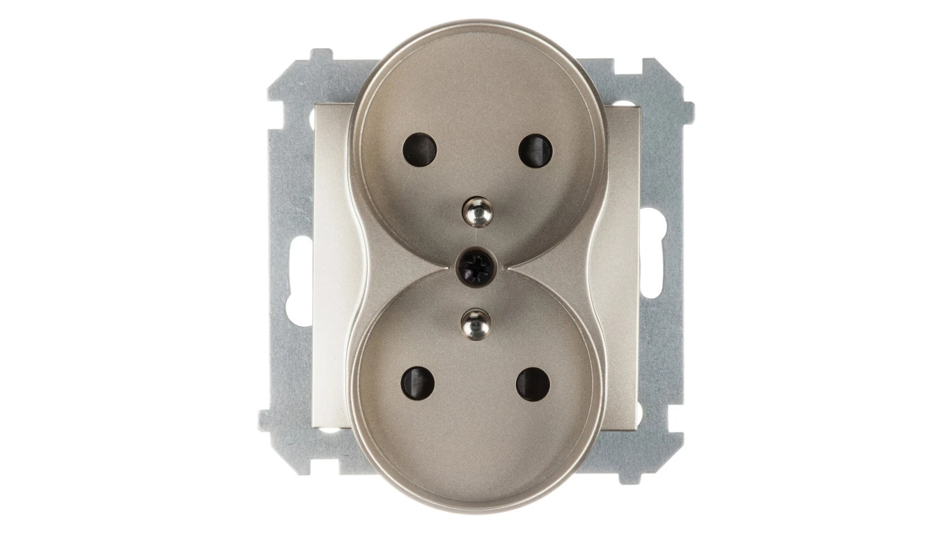 Simon 54 Gniazdo podwójne z/u 16A IP20 z przesłoną torów złoty mat DGZ2MZ.01/44