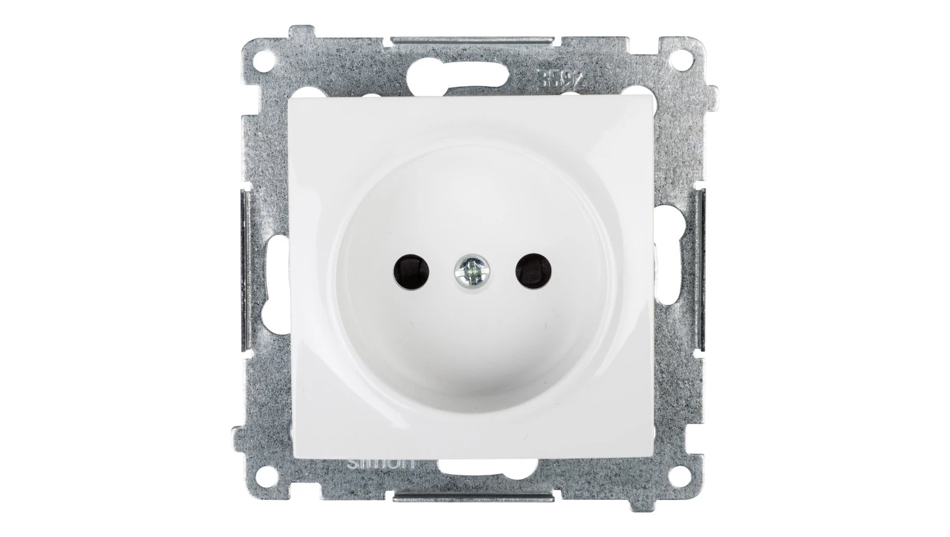 Simon 54 Gniazdo pojedyncze b/u 16A IP20 z przesłoną torów białe DG1Z.01/11