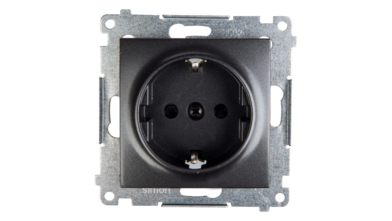 Simon 54 Gniazdo pojedyncze SCHUKO z/u 16A IP20 z przesłoną torów antracyt DGSz1Z.01/48