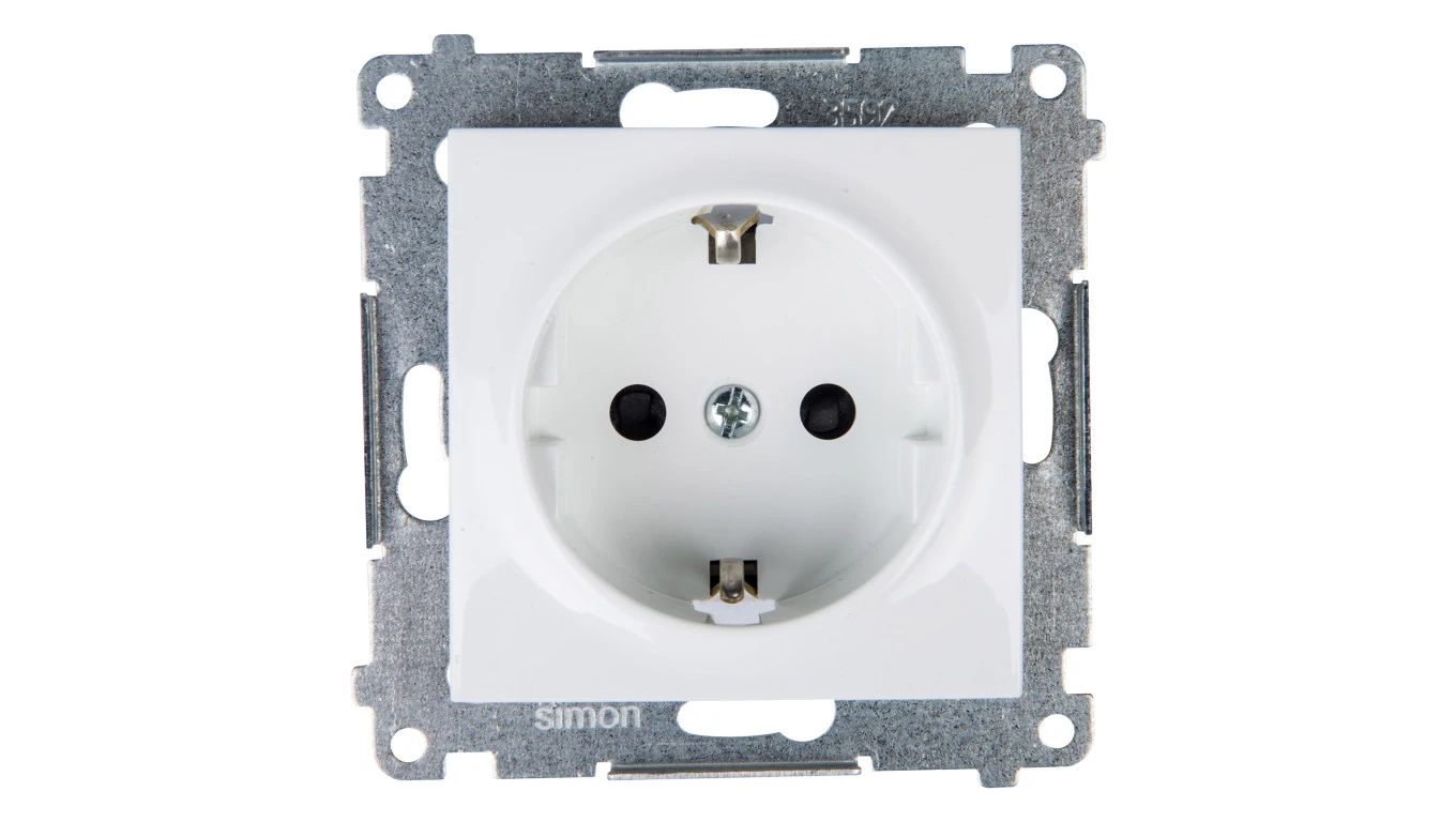 Simon 54 Gniazdo pojedyncze SCHUKO z/u 16A IP20 z przesłoną torów, szybkozłącza, białe DGSz1CZ.01/11