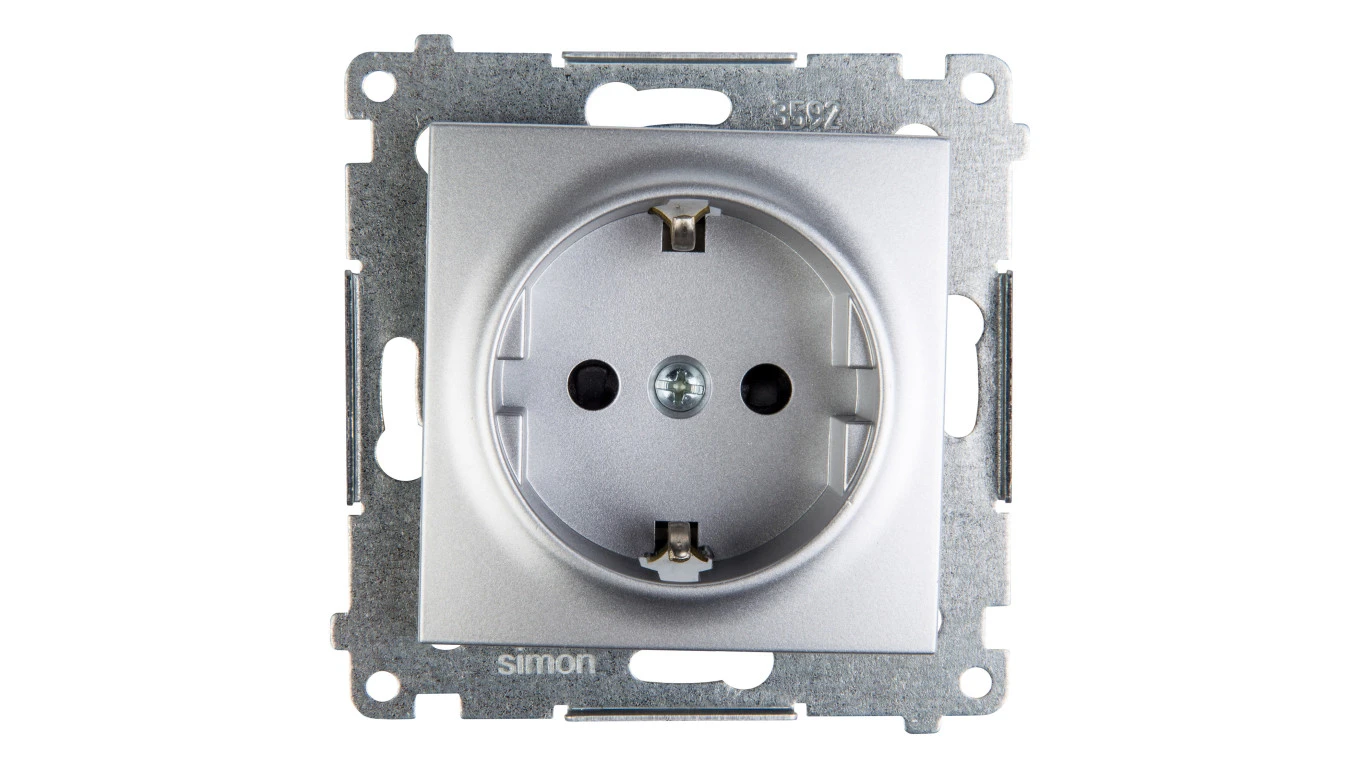 Simon 54 Gniazdo pojedyncze SCHUKO z/u 16A IP20 z przesłoną torów, szybkozłącza, srebrny mat DGSz1CZ.01/43
