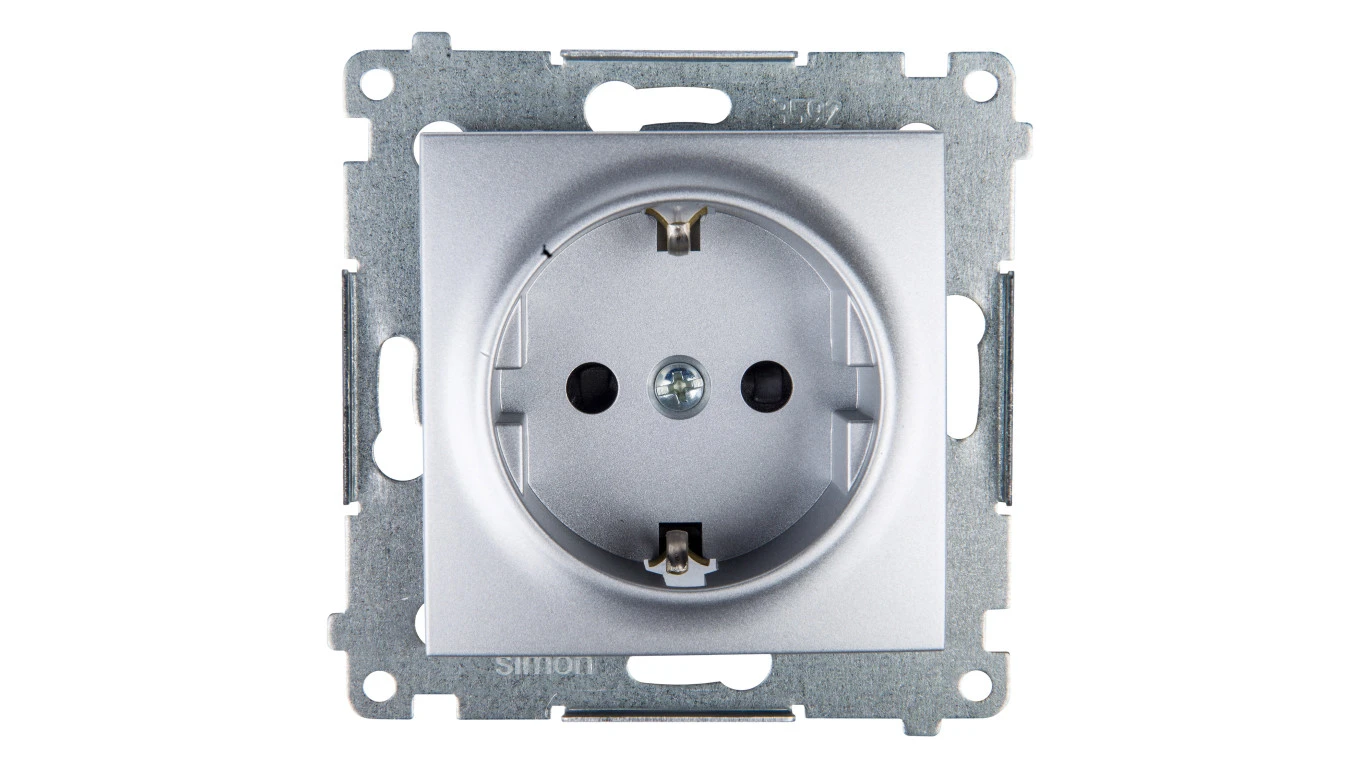 Simon 54 Gniazdo pojedyncze SHUKO 16A IP20 z przesłoną torów srebrny mat DGSz1Z.01/43