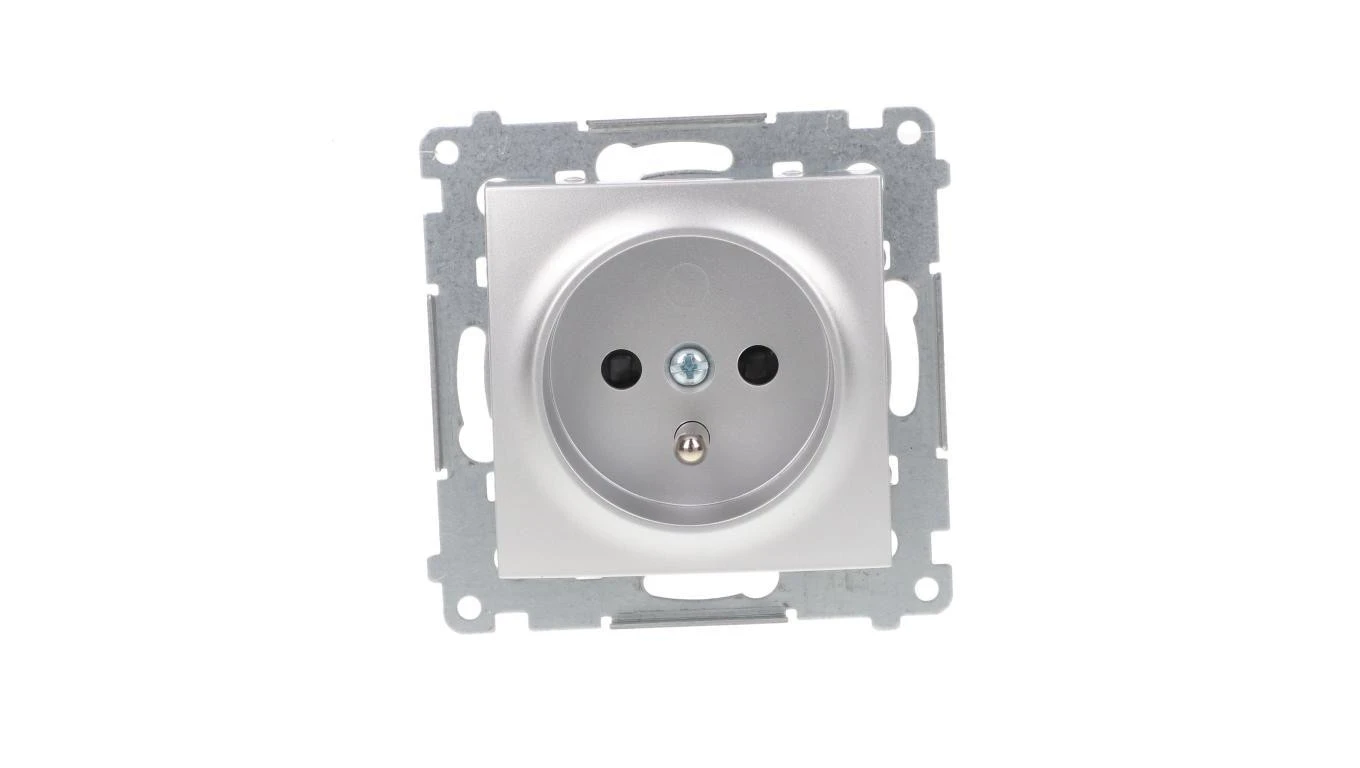 Simon 54 Gniazdo pojedyncze z/u 16A IP20 z przesłoną torów, szybkozłącza, srebrny mat DGZ1CZ.01/43