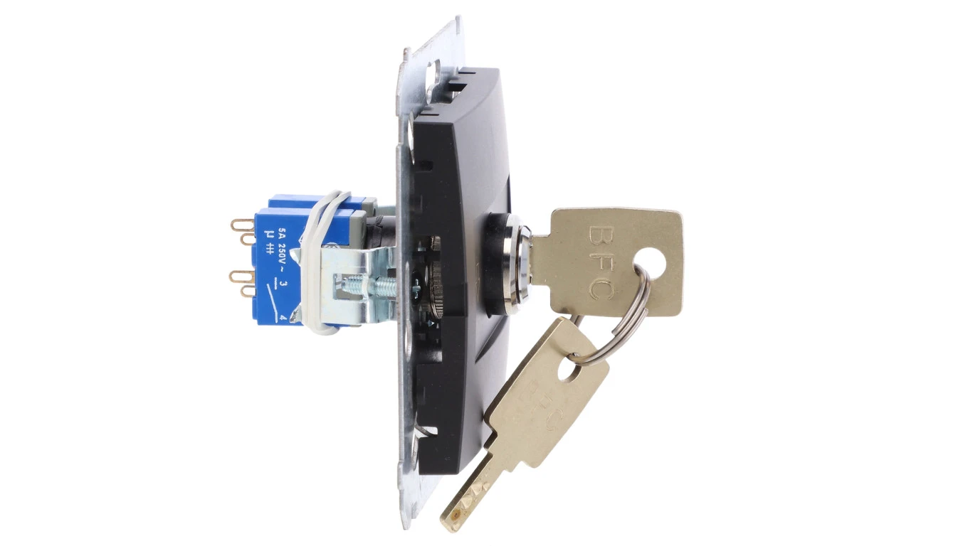 Simon 54 Łącznik na kluczyk rolet. 1-bieg.(moduł) 3 poz. I-0-II 2 styki NO 5A 250 wyj. klucza w każdej poz.czarny mat DWZK.01/49