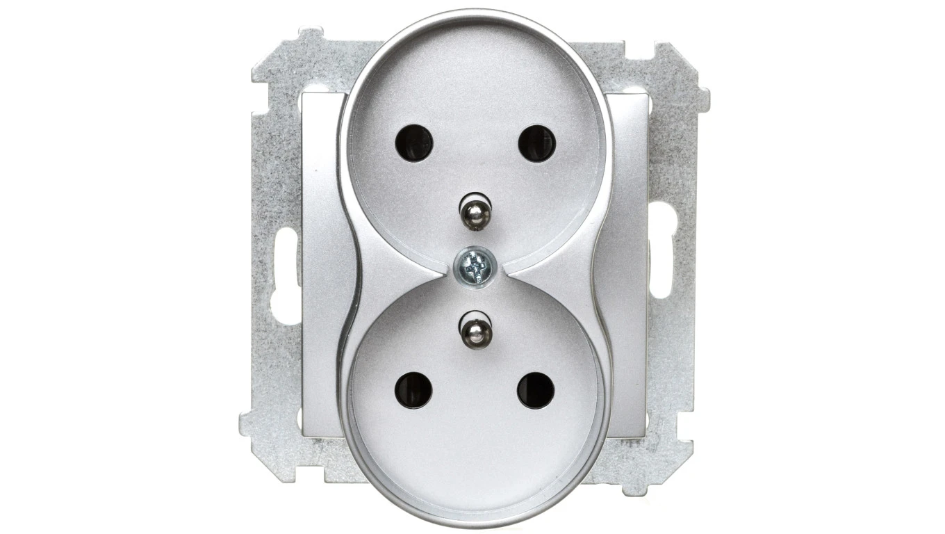 Simon 54 Nature Gniazdo podwójne z/u 16A 250V z przesłonami do ramek srebrne DGZ2MZN.01/43