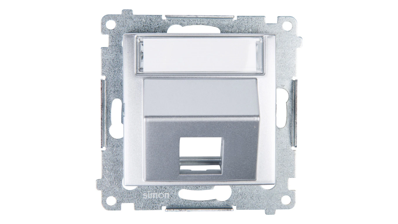 Simon 54 Pokrywa gniazda teleinformatycznego pojedynczego RJ skośna z polem opisowym srebrny mat DKP1S.01/43
