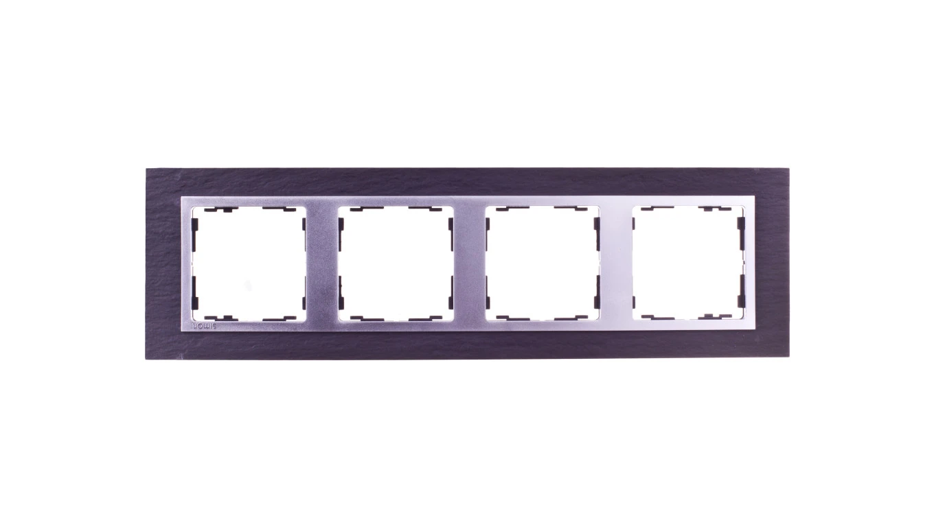 Simon 82 Ramka poczwórna pozioma kamień łupek/ ramka pośrednia aluminium mat 82947-63